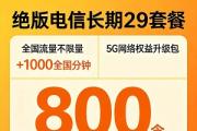 绝版电信长期𝟮𝟵套餐:全国流量不限量+1000全国分钟