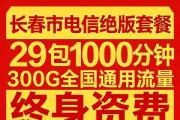 长春市电信绝版套餐29包1000分钟300G全国通用流量[强]终身资费[强]