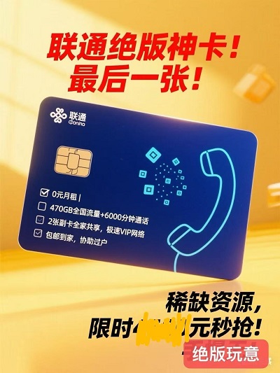 谁能拒绝“月租为0”的顶级福利?这张联通绝版神卡直接打破行业常规,不用每月抠抠搜搜缴话费,却能畅享470GB全国流量+6000分钟通话,相当于把“流量池”和“通话库”直接搬回家。不管是刷短视频、追高清剧,还是跨省出差打工作电话、跟家人煲长途粥,都不用再盯着流量余额、算着通话时长,真正实现“用网不心疼,通话无上限”的自由状态,这样的性价比在市面上几乎找不到第二张!