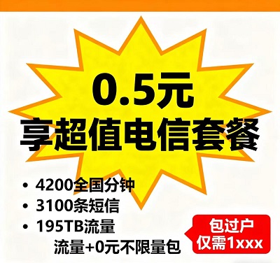电信神卡重磅上新!长期0.5元月租就能拿下4200全国通话分钟+3100条短信,再享195TB国内通用流量+0元不限量包,流量通话直接用不完~ 支持包过户,安全靠谱,价格1xxxx,性价比逆天!