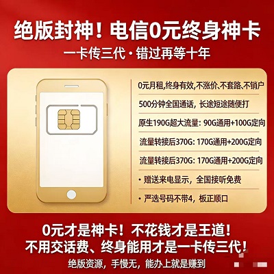 闭眼入!电信绝版0元卡,终身免费+370G大流量