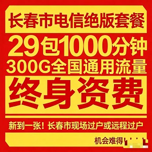 长春市电信绝版套餐29包1000分钟300G全国通用流量
